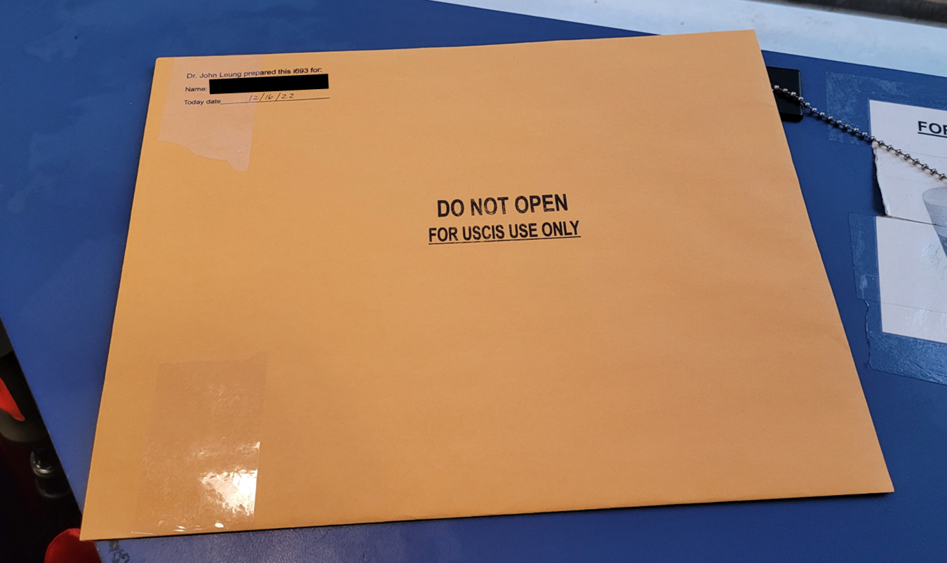 위 내용에 대해 이민국에서 지정한 병원에서 신체검사를 받고 I-693 서류를 봉투에 밀봉된 채로 받아 그대로 이민국으로 접수해야 한다. (이민국 지정 병원 검색: https://www.uscis.gov/tools/find-a-civil-surgeon)