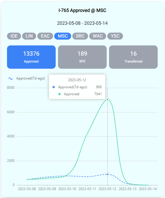 엄청난 수의 I-765 노동허가 EAD 건이 MSC에서 승인되었다.
