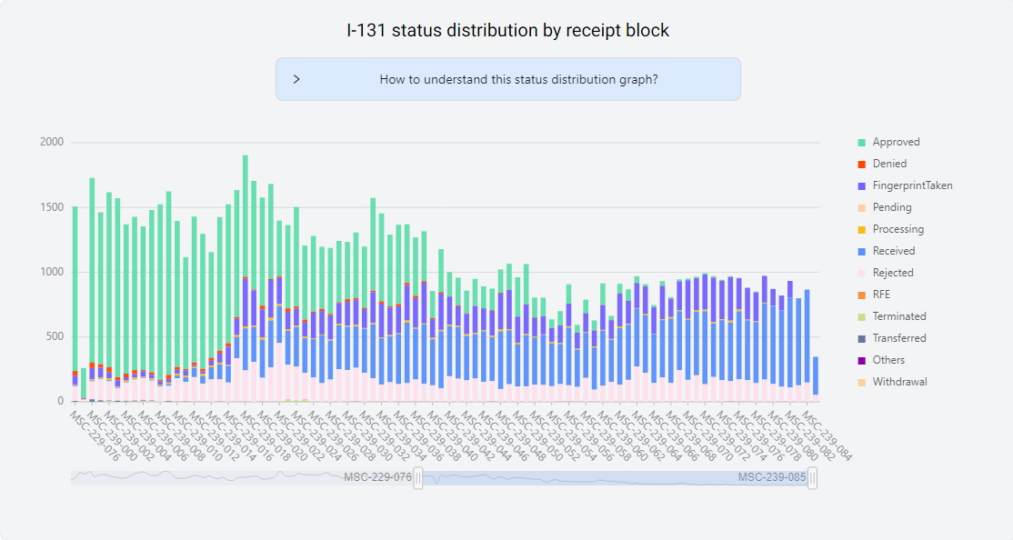 그리고 이 승인 케이스들을 살펴보면 대부분이 5월 11일 언저리의 I-765 대량승인 때 I-131이 함께 승인되지 못한 경우들이다. 각각의 I-131 승인번호 앞뒤번호를 검색해보면 함께 접수한 I-765의 이력을 볼 수 있다.