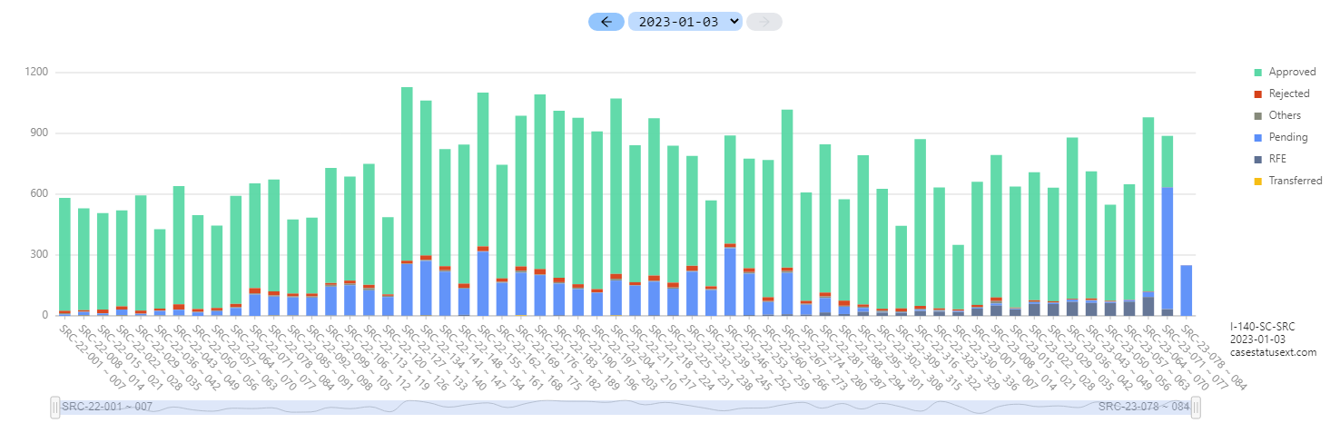 SRC-SC, 즉 Texas service center로 접수된 I-140 서류 통계고, 역시 초록색이 승인된 건수다.